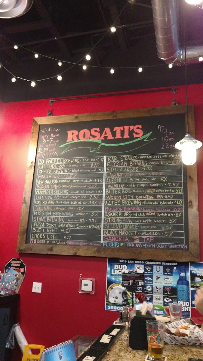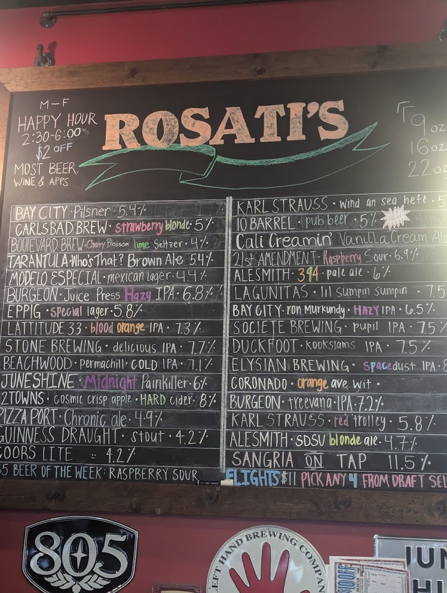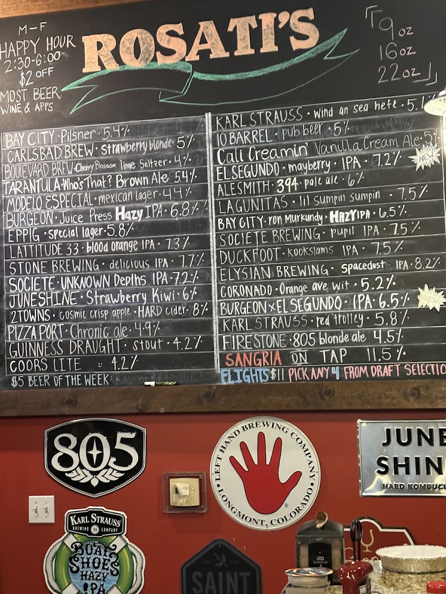 For those interested in something more unique, Rosati’s also serves a selection of craft beers, including Bay City, Carlsbad Brew, Tarantula, Who’s That Modelo Especial, and Burgeon Juice Press Hazy. These beers provide a great pairing for the delicious dishes, making it the perfect spot to enjoy a meal with friends or family.